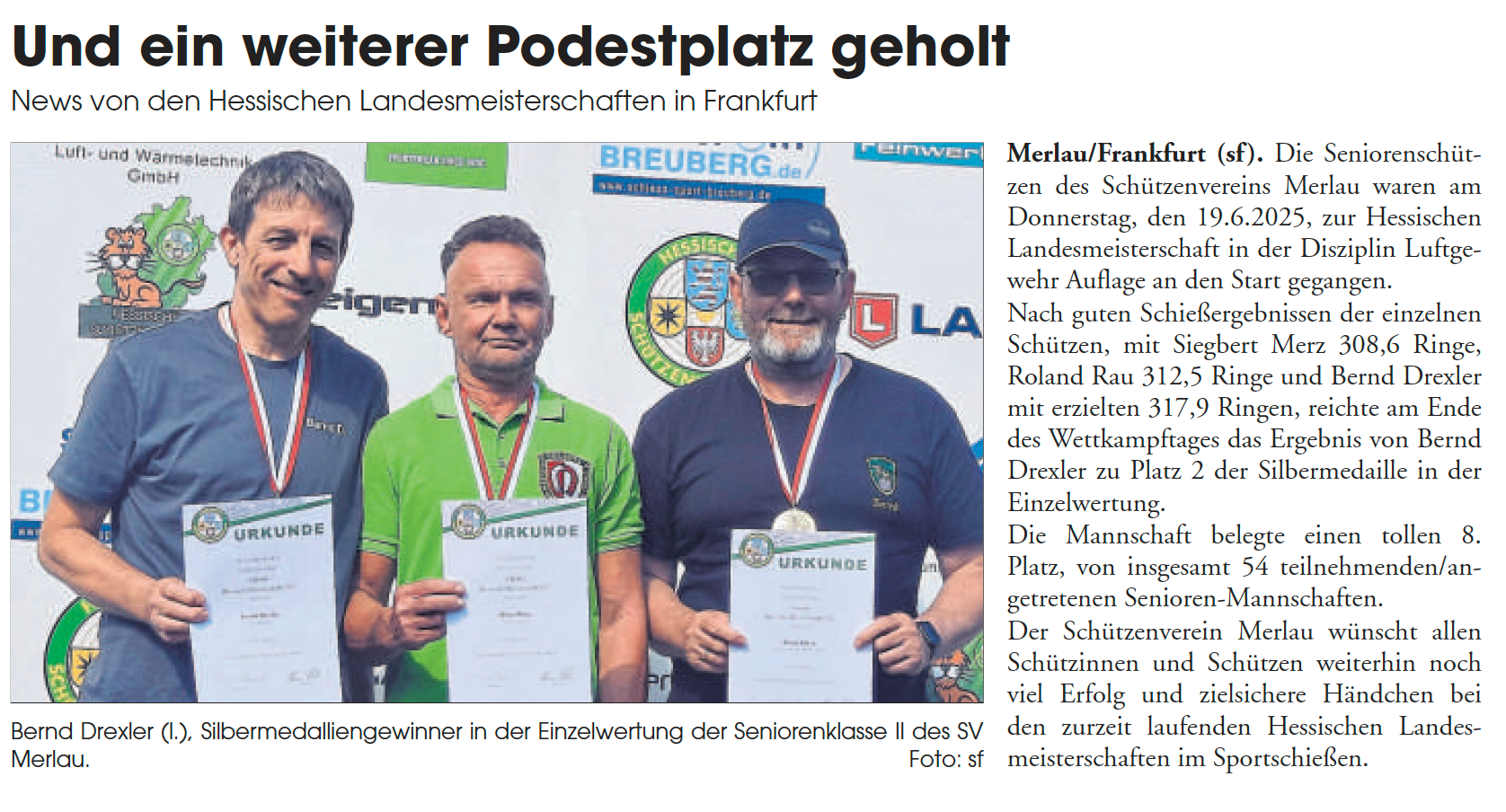 Der Schützenverein Merlau wünscht allen Schützeninnen und Schützen noch viel Erfolg bei der zurzeit